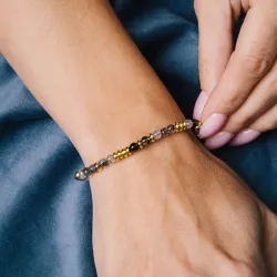 Subtelne połączenie białego turmalinu i czarnego hematytu na eleganckim sznurku tworzy wyjątkową kompozycję, która idealnie współgra z różnymi stylami. Wykorzystanie mosiądzu dodaje biżuterii delikatnego, złotego blasku. Jest to uniwersalna ozdoba, która pasuje zarówno do codziennych, casualowych stylizacji, jak i do bardziej eleganckich kreacji. Bransoletka jest wygodna w noszeniu i nie krępuje ruchów. Dzięki regulowanej długości, idealnie dopasuje się do każdego nadgarstka.